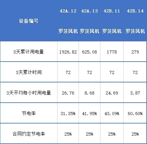 同时提到相较此前设备,潍坊富源安装的四台罗茨风机体积小,噪音低,节能效果显著。测试节电效率达到31.35%~60.06%,四台设备全部超过合同约定的节电效率。