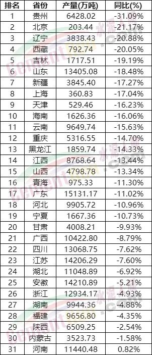 国家统计局数据显示,12月水泥产量为1.68亿吨,同比下降12.3%;2022年产量为21.18亿吨,同比下降10.8%。从分省数据来看,2022年全国4个省市水泥产量降幅超20%,贵州降31.09%、北京降21.17%、辽宁降20.88%、西藏降20.05%。