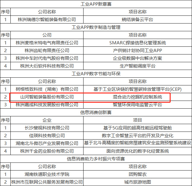 近日,湖南省工信厅公布2022年全国工业APP和信息消费大赛湖南参赛获奖名单,山河智能装备股份有限公司(以下简称“山河智能”)榜上有名。