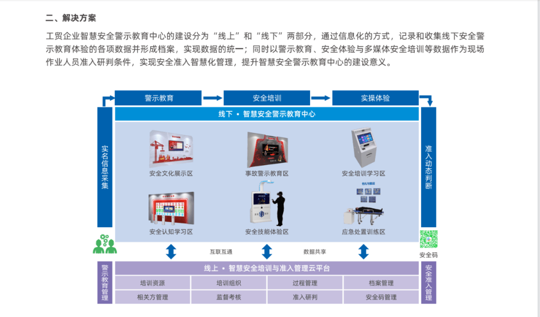 金隅冀东水泥合川有限公司智能VR安全体验培训馆分为前厅、安全防护认知区、事故伤害实训区、多媒体智慧教室、VR事故体验区共五大功能区,采用“正向实训、逆向体验、安全互动”的安全培训创新模式。