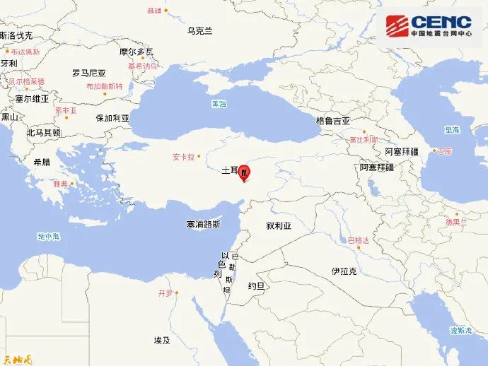 2月06日09时28分在土耳其(北纬37.35度,东经36.85度)发生6.7级地震,震源深度20千米。