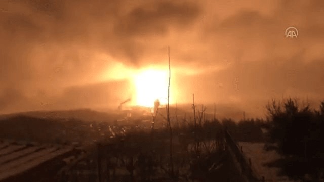 土耳其东南部哈塔伊省的天然气管道爆炸现场画面。图自土媒