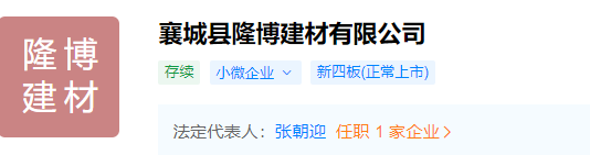 据查询,襄城县隆博建材有限公司为新四板上市的小微企业,法定代表人张朝迎。企业经营范围为水泥粉磨生产,建材销售。企业注册地址为河南省许昌市襄城县库庄乡西沈村。