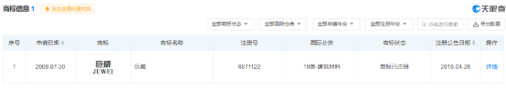 企业知识产权商标信息显示,企业注册商标为“巨威”品牌。