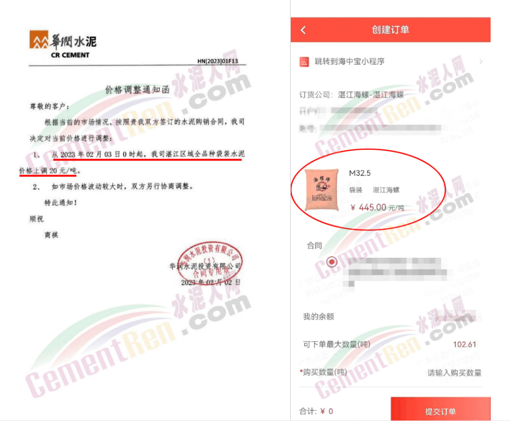 本月初湛江区域主要品牌企业曾通知上调全品种袋装水泥价格20元/吨,上调后湛江海螺M32.5袋装水泥报价445元/吨。