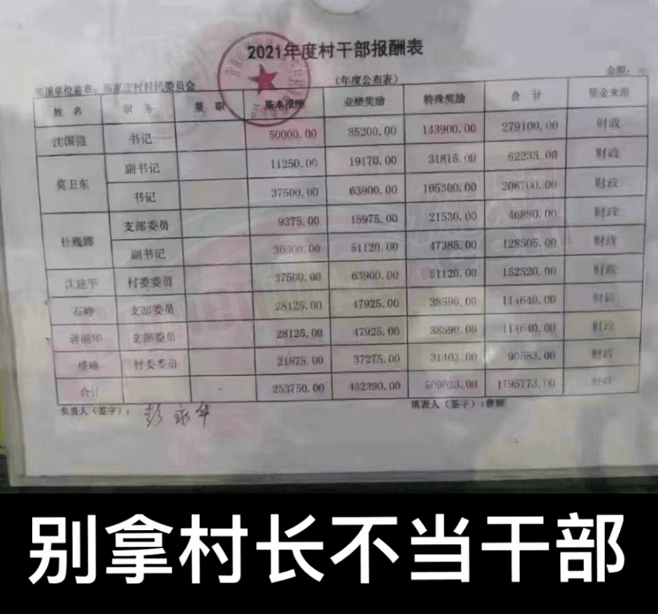 不久前,一份村干部报酬表在网上热传,水泥人网注意到,填报单位写着某村民委员会,列出了2021年度书记、副书记、村委委员、支部委员等七位村干部的报酬明细。