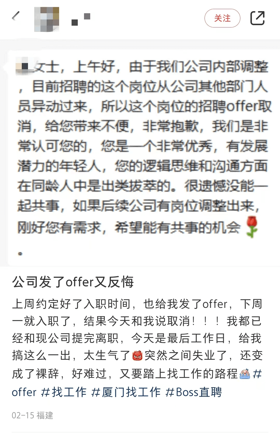 一些大型电子厂,十几个厂区本可以招工几百几千人,却根本不招或是只招几十个岗位,原因自然离不开订单荒,中小型企业亦然,甚至还有拿到录用通知单却被无情“抛弃”的。