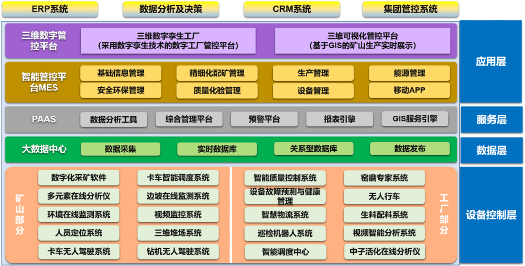 东方测控水泥智能工厂系统集成解决方案是一套全流程整体解决方案。该方案以节能降耗、精益生产为目标,建设石灰石数字矿山系统、卡车智能调度系统、水泥生产两磨一窑智能控制和过程质量控制以及智慧物流、设备故障与健康管理系统、生料配料分析仪、智能质量控制系统等系列智能化系统,实现生产智能控制。利用数字化协同、大数据分析技术实现智能管理,智慧决策。目前水泥智能工厂系统集成解决方案已在海螺水泥、青松建化等大型水泥集团成功应用。