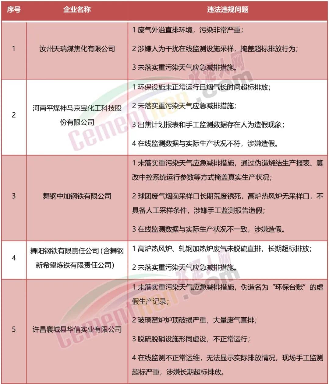 近日,生态环境部部长黄润秋、副部长赵英民分别带队赴水泥大省河南和陕西对涉及气企业进行突击检查。企业普遍存在不正常运行污染治理设施、超标排放、不落实重污染天气应急减排措施、生产台账弄虚作假、在线监测和手工监测数据造假等违法违规问题。