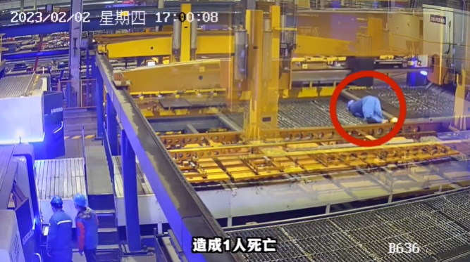 2023年2月2日16点59分,长沙某机械有限公司发生一起机械伤害事故,造成1人死亡。经初步了解,本起生产安全事故原因为当事人违反安全操作规程,在激光下料平台正在进行交互运转时,上台对余料进行清理,导致正在交换工作的上、下平台将其撞倒并挤压致死。