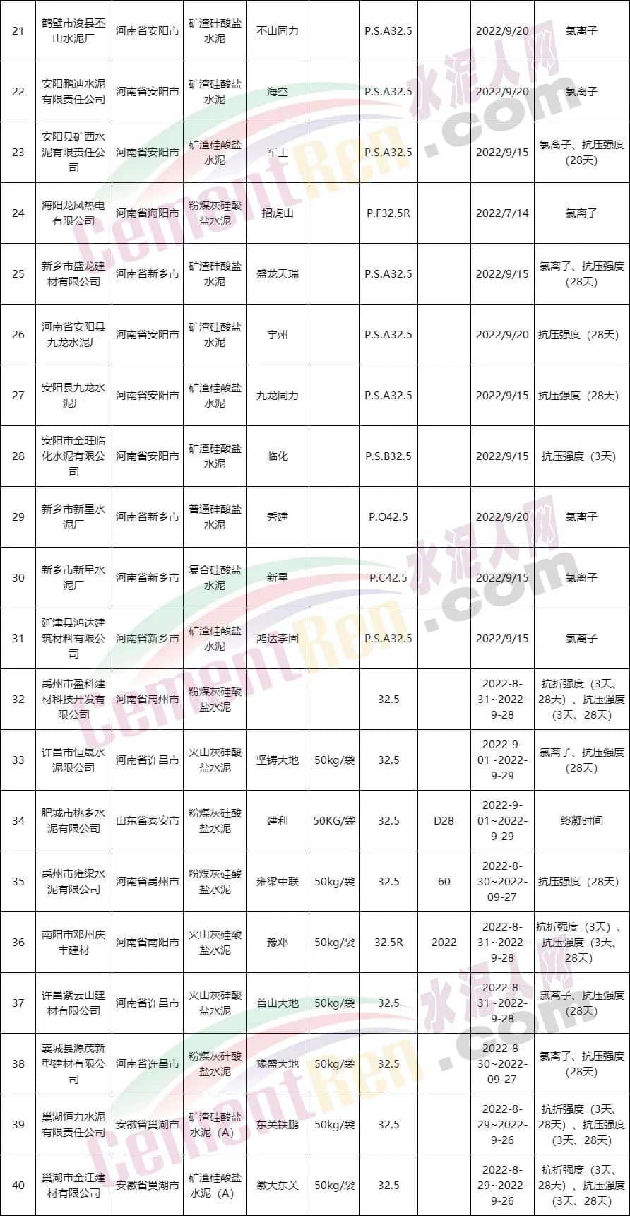 各省市地方监督抽查21批次水泥质量不合格,涉及强度和氯离子