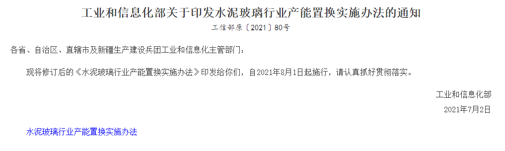 2021年8月1日起新修订的《水泥玻璃行业产能置换实施办法》 规定严禁备案和新建扩大产能的水泥熟料项目。确有必要新建的,必须制定产能置换方案,实施产能置换。产能置换要求中不论是位于国家规定的大气污染防治重点区域实施产能置换的水泥熟料项目,还是跨省置换的项目,均加大了置换比例,但未规定在能耗方面的置换要求。