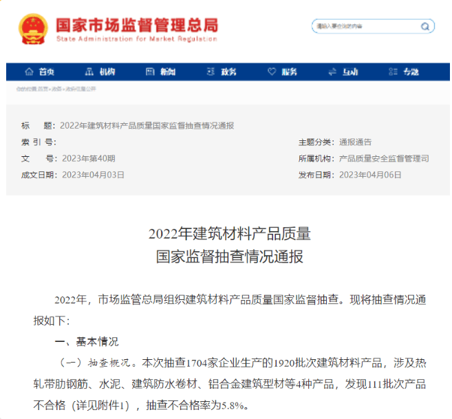 从国家市场监管总局近三年发布不合格品名单可见,共有77批次水泥被通报,不合格率分别为5.5%、4.5%、3.3%。