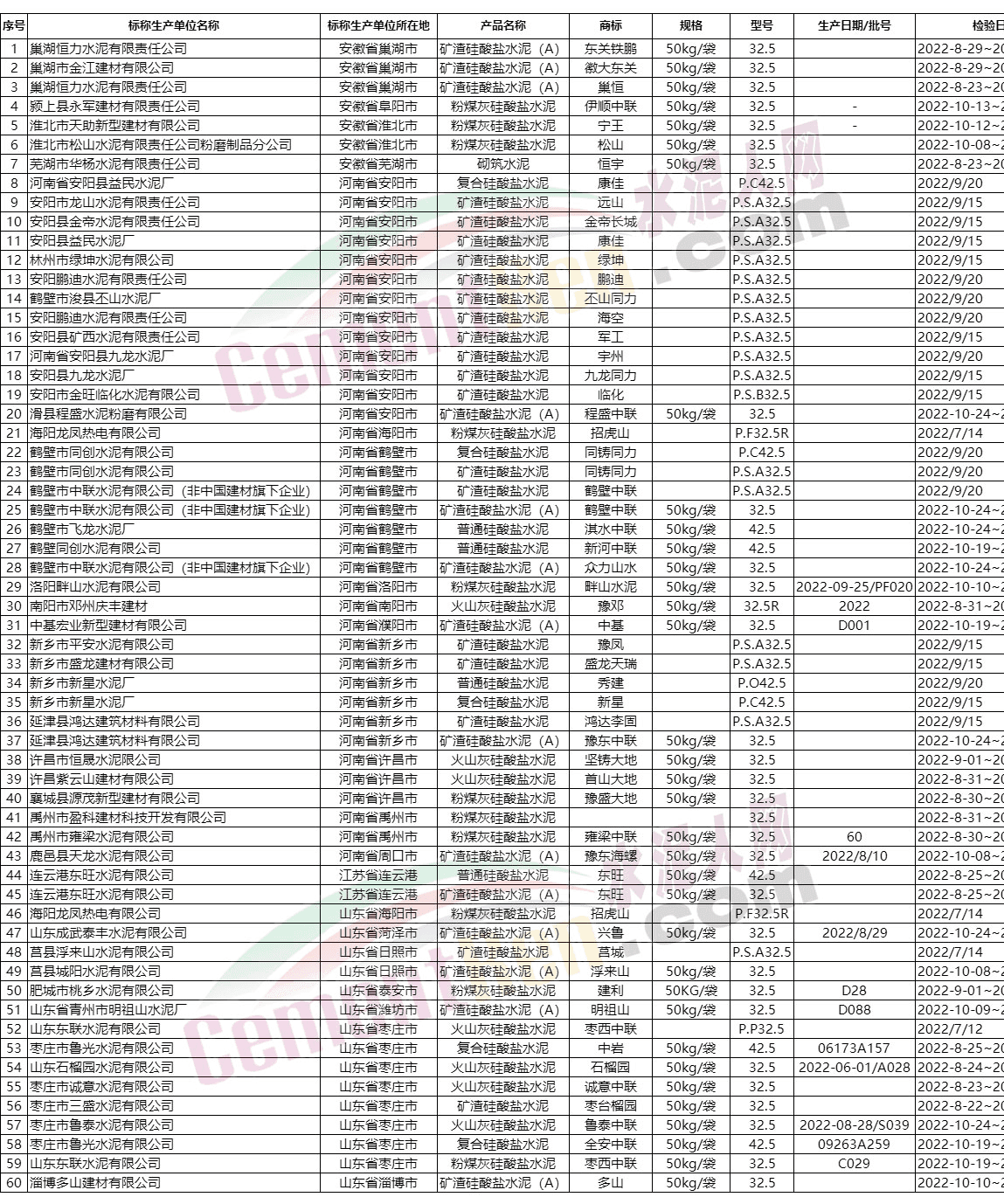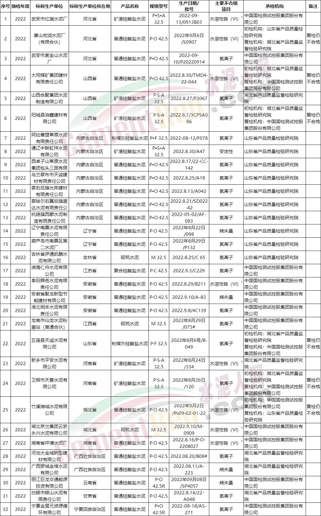 水泥质量万里行2022年流通领域抽样60批次不合格,不合格率31%