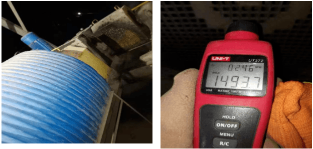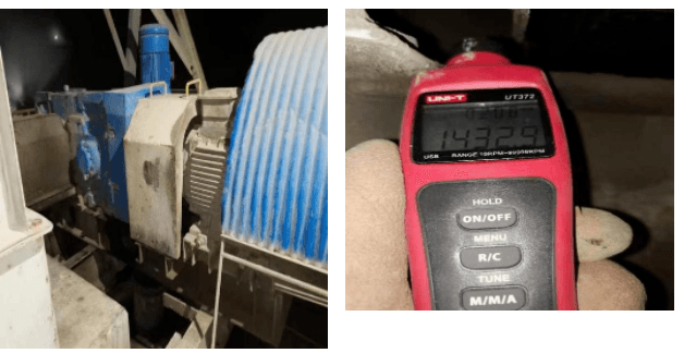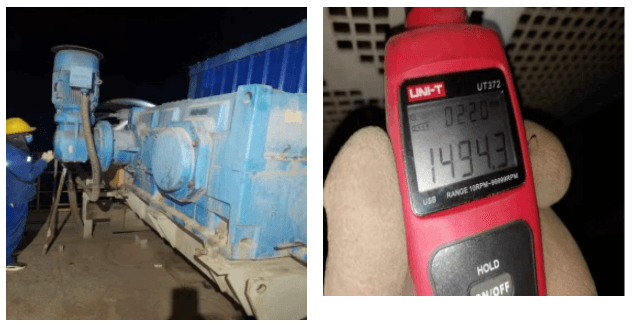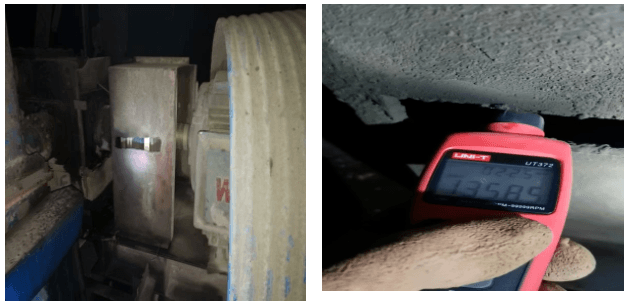 2.设备运行后,使用激光测速仪照射反光贴纸,分别测试并记录各设备主、从动轴运行转速。