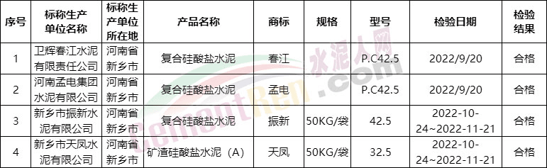 近期新乡市公布的2022年市抽产品质量监督抽查结果显示水泥行业生产领域共抽检32批次水泥及20批次水泥包装袋全部合格,其中也包括2022年4月26日抽检的新乡市丰收水泥厂生产的一个批次“佳丰”牌矿渣硅酸盐水泥P.SA 32.5,抽检结果为合格。(相关链接:通告:河南新乡32批次水泥,20批次包装袋抽检结果公布)。