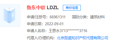 水泥人网注意到,“鲁东中联LDZL ”商标申请人为“王恩水3713***3716”