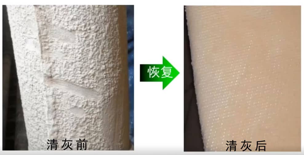 清灰后,肉眼可见表面光滑的膜,烟气异常状态后,系统仍然能恢复到初始状态,才算是清干净了。