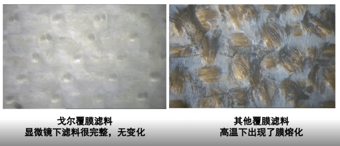 戈尔玻纤覆膜滤袋即使在260度高温下工作24小时,未出现纤维老化导致滤袋破损,粉尘不达标的情况,且外观无任何变化。
