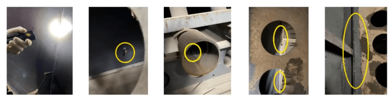 5 及时维护除尘器盖板等各处漏风、漏水问题。漏风可能导致冷空气进入后,局部结露腐蚀,除尘器入口负压不足,系统压差增大等。