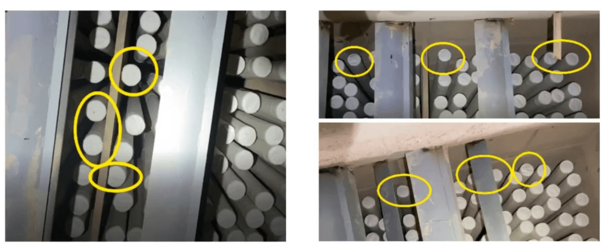 6 检查除尘器灰斗烟气入口处是否有堆灰现象。堆灰可导致截面积减小,气流流速增大,系统压差增大,并可能造成局部位置的滤袋冲刷磨损