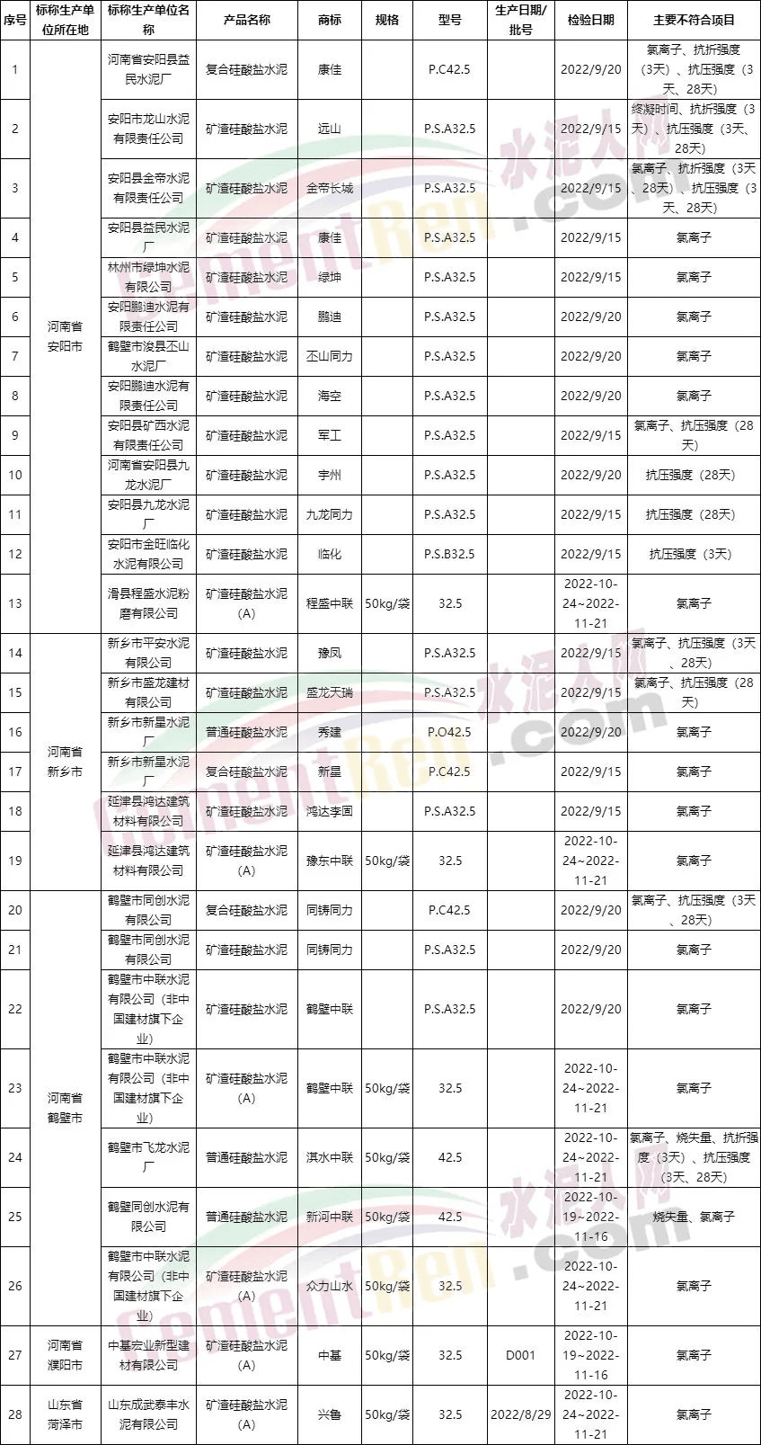水泥质量万里行组委会此前通报的2022年水泥质量抽检结果显示,菏泽及豫北区域共抽检43批次不合格水泥,其中28批次不合格,合格的产品仅15批次,不合格率达到了惊人的65.1%。