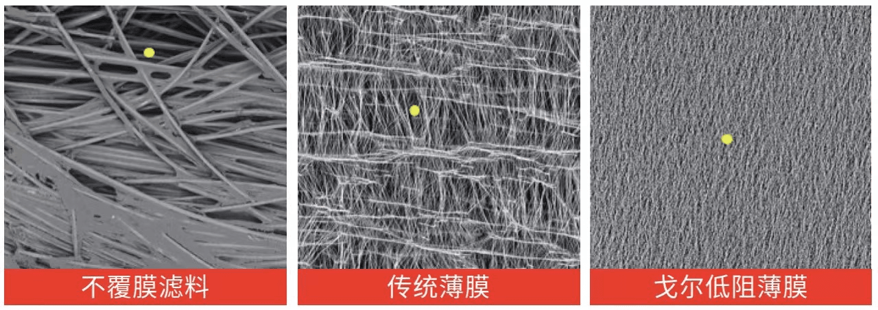 GORE®低阻滤袋采用第5代ePTFE低阻透气膜,表面更细密光滑,极易清灰。在清灰时所需要的压缩空气集齐所需能量就更少,从而延长滤袋的使用寿命。