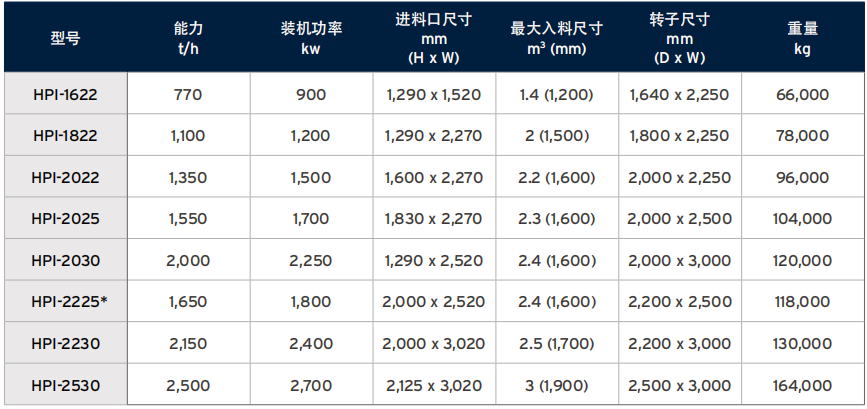 哈兹马克HPI系列初级反击式破碎机,选配第三级研磨腔,凭借其独特的设计、对产品粒径分布的出色控制和成功的应用考验,非常适合将中等硬度的岩石破碎到 0 - 70 和0- 50 毫米并具有良好分级的粒径区间。该设备是应用立式辊磨机和辊压机的水泥生产线的首选破碎设备。