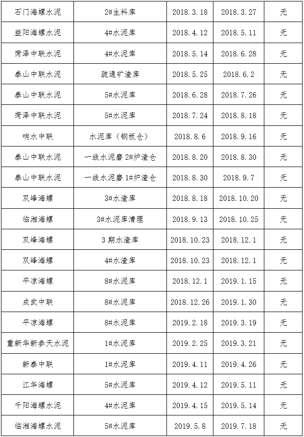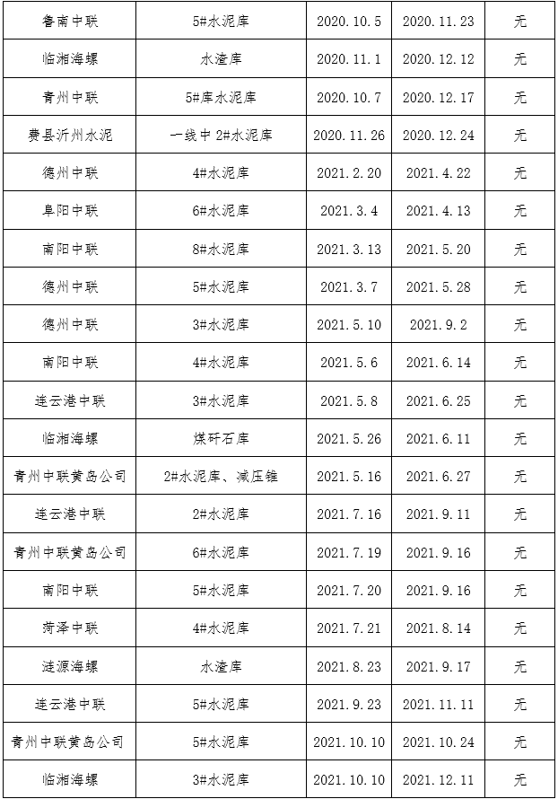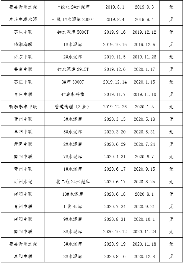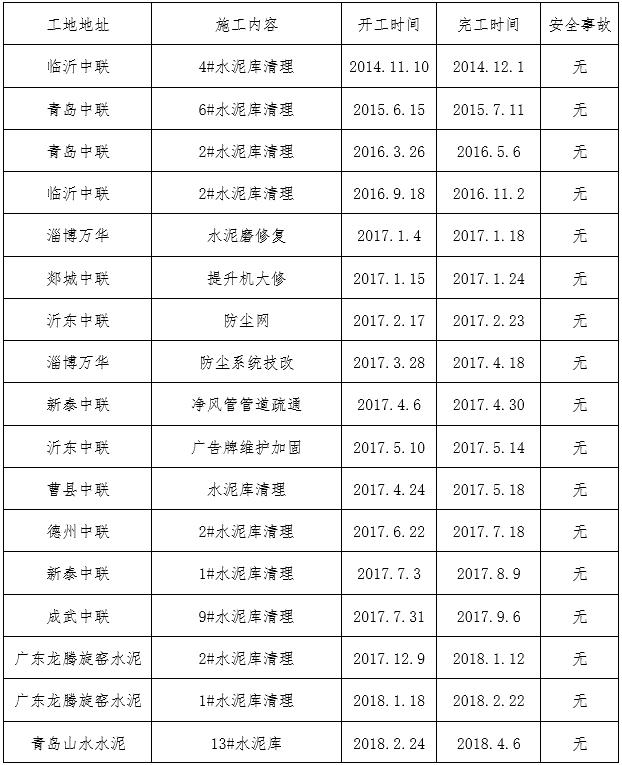 鑫盛利水泥仓智能机械清理有限公司业绩表