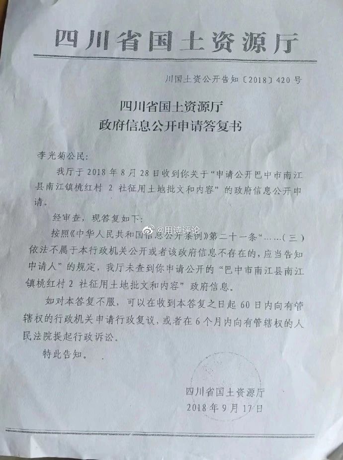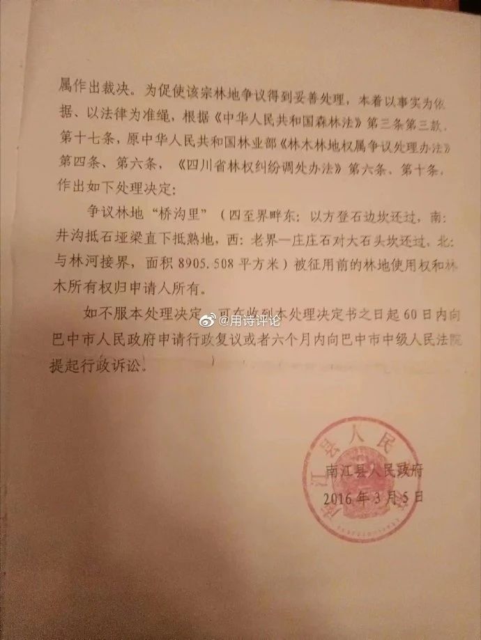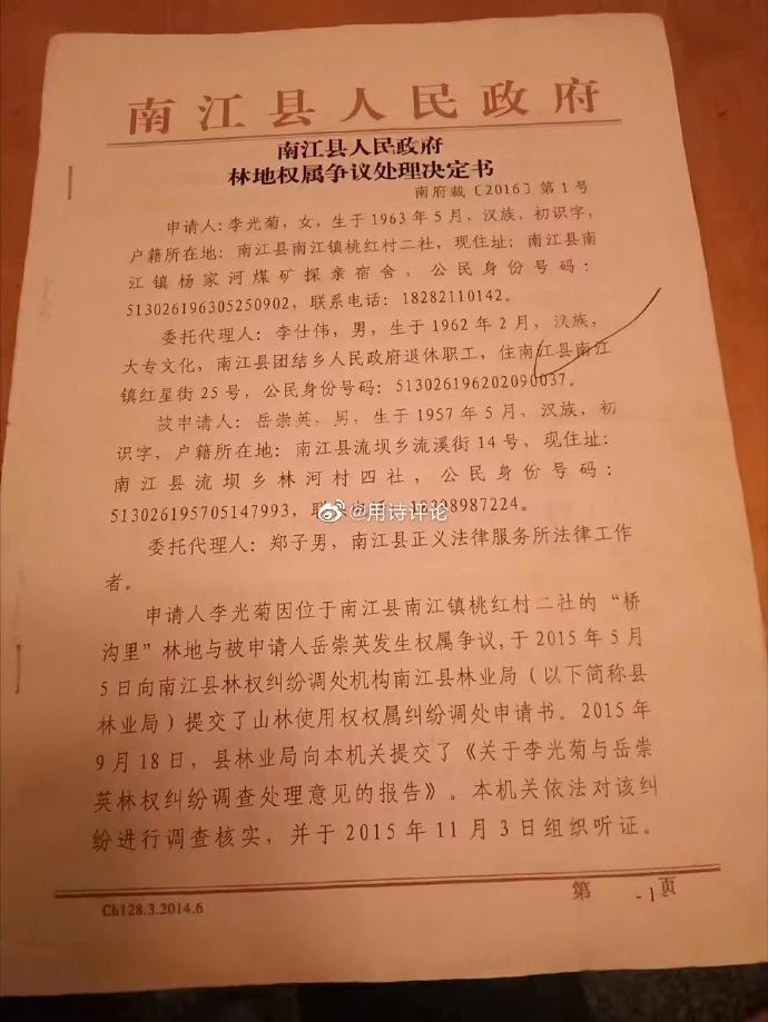 日前,网友“@用诗评论”在社交媒体发布了一则“四川南江一企业建厂强征土地致一农妇维权十年难讨说法”的消息。