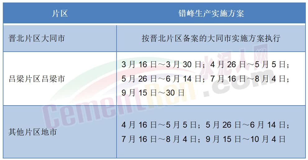 《山西省水泥行业2023-2024年错峰生产工作实施方案》要求所有水泥熟料生产线非采暖错峰生产次数不少于三次;其中完成超低排放改造的企业不少于60天,未完成超低排放改造的企业不少于70天。