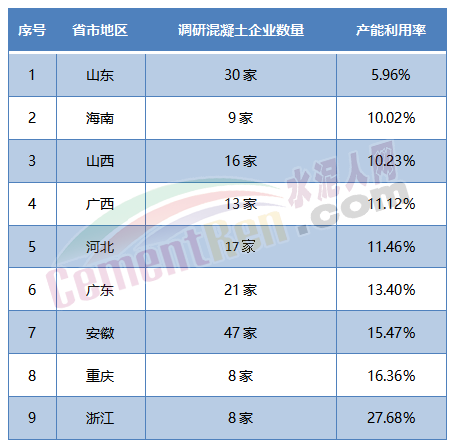 水泥市场的低迷,从下游各地混凝土企业产能利用率情况也可见其一斑。