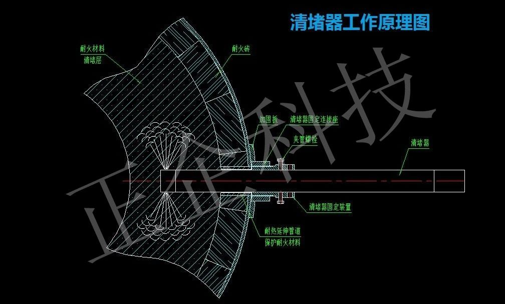 据悉,这两家水泥企业使用的热能膨胀清堵技术由山东正企工矿机电科技有限公司(以下简称“山东正企”)自主研发生产。据山东正企总经理许贯民介绍,热能膨胀清堵技术可用于分解炉顶部的结皮清理,窑尾篦冷机“雪人”的在线清除,燃烧器头部出现的结焦、预热器管道结皮及管道堵塞、对料库的拱形、炉璧形、桥形、漏斗形板结能够有效的快速清理。山东正企热能膨胀清堵技术针对水泥库电石渣废料产生的乙炔气体爆炸问题能够安全的进行料库清理,这项技术的应用属国内首创。该技术具有超强的耐高温特性,可在设备内部1200°的高温下实施在线清除,替代了水枪等危险的作业工具,不需要停机冷却就能快速处理结皮和堵料。