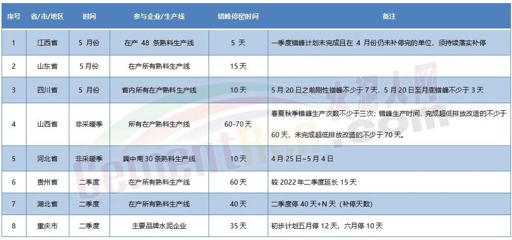 近来,包括河北、山东 、山西、辽宁、贵州、四川在内的十几个省份水泥企业开启了二季度错峰生产。同期因市场需求下滑,企业库存持续创新高,为化解产销矛盾,其他区域企业也陆续开始自主停窑。