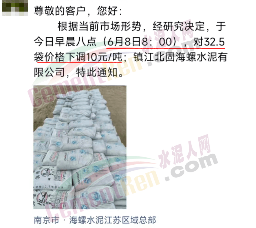 6月6日前后,江苏南通、扬州、无锡、泰州地区包括海螺水泥在内的主流品牌水泥报价下调10-15元/吨,降价后江苏沿江海螺水泥P.O42.5散装车运出厂价280元/吨,PC42.5散装车运出厂报价220-240元/吨。