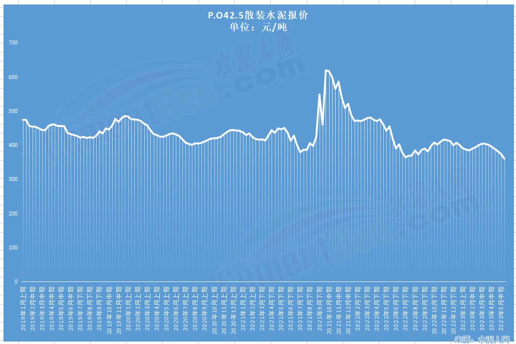 流通领域水泥报价:大跌258.6元/吨,跌幅41.78%