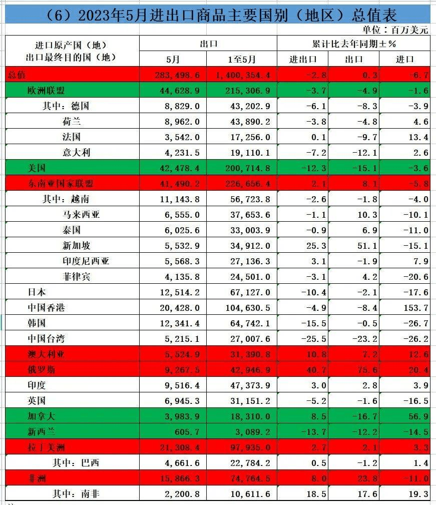 并不乐观的数据背后,是全球经济出现了衰退,导致需求越来越少,欧美等地区对于我国的订单更是几近腰斩。1-5月份的累计情况,对美国出口同比下滑15.1%,对欧洲同比下滑4.9%,对加拿大、新西兰都是同样的问题。