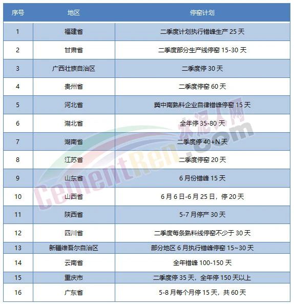 据水泥人网此前报道:近期,河北、山西、陕西、甘肃、江苏、福建、山东、湖南、湖北、广西、四川、重庆、云南、贵州、新疆等10多个区域水泥企业按计划执行错峰生产,其他区域本无计划停窑却因水泥企业库满而不得不停。