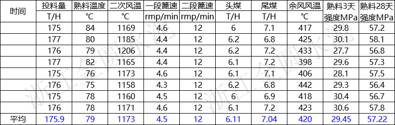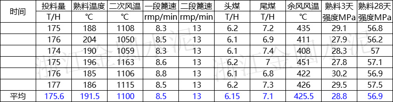 二次风温:平均值≥1150,中控显示数据(产量:2800-3000t/d);