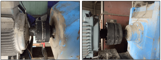 无独有偶,山东联合王晁水泥有限公司(以下简称“王晁水泥”)亦在其500kW辊压机传动系统中采用了江苏磁谷同步永磁耦合器新型柔性传动保护装置,运行效果良好,振动大幅减小(现场测量振动值:电机端水平2.3 mm/s,垂直0.9 mm/s,轴0.2 mm/s;减速机端水平0.4 mm/s,垂直0.2 mm/s,轴0.4mm/s)。