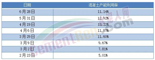水泥销量及库存压力从各区域商混搅拌站产能利用率可见一斑。从2月中旬至6月下旬调研数据可见,混凝土产能利用率均值从5%左右升至4月中旬13.22%又转向下滑。