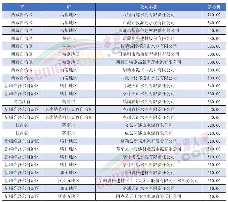 高原水泥报价710元/吨,铁路拉动,供需相对平衡