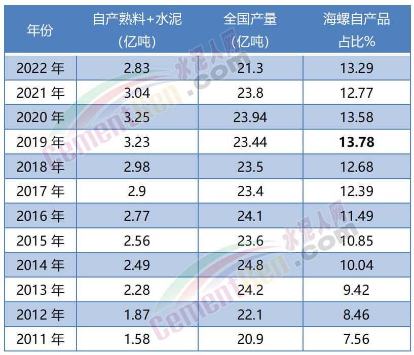 从历史数据来看,自2011年以来,海螺水泥的自产品行业占比一直在稳步提升,最高占比发生在2019年,达到13.78%,之后有所回落,而到了2022年又发生反转了。