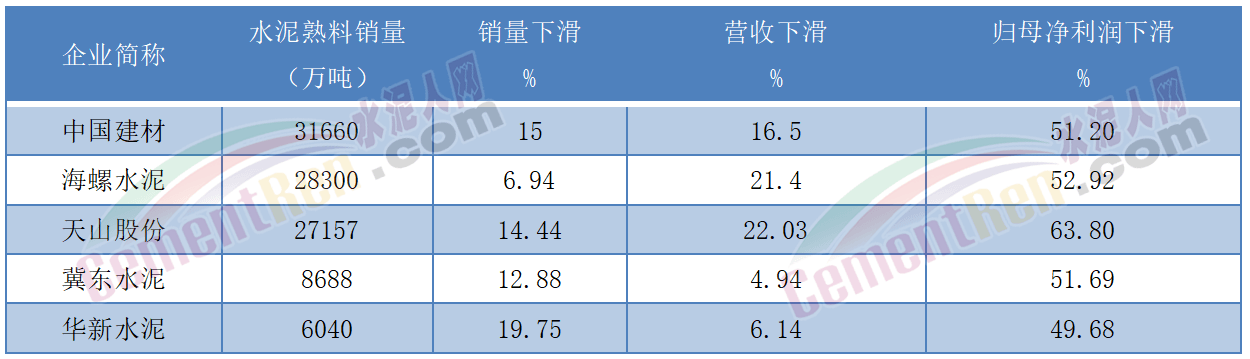 对比中国建材、海螺水泥、天山股份、冀东水泥、华新水泥五家企业销量下滑幅度可见,海螺水泥的销量下滑相对较小。