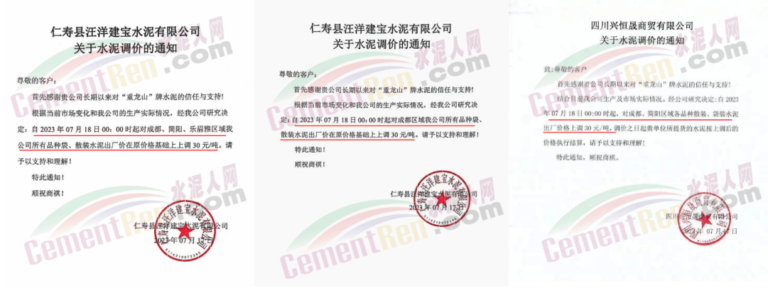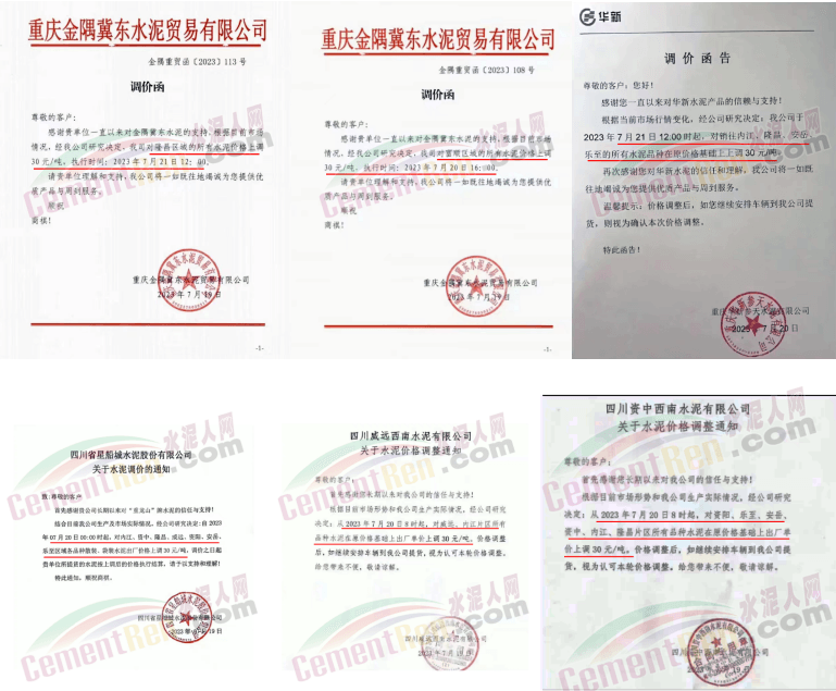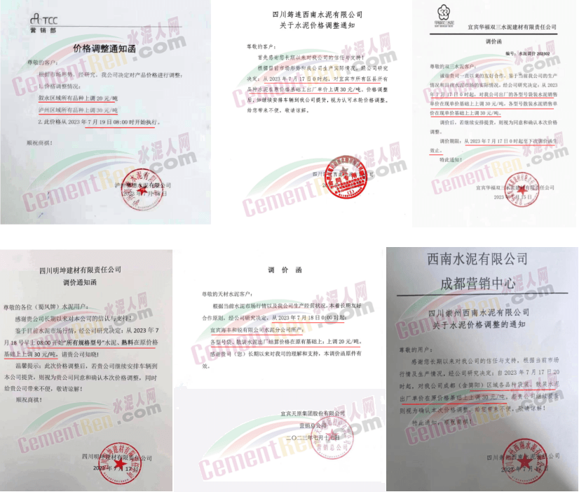 20日起,陕西铜川声威、富平生态,四川省星船、西南等多家水泥企业上调水泥价格30元/吨;