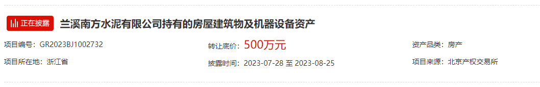 近期华南区域主要品牌企业发布公告,公开转让旗下一家水泥企业全部资产。资产包括土地、厂房和料库等建筑构筑物,生产设备、设施和其相关备品配件,以及铁路专用线(两线轨道和相关基础设施)等主要辅助性物资。