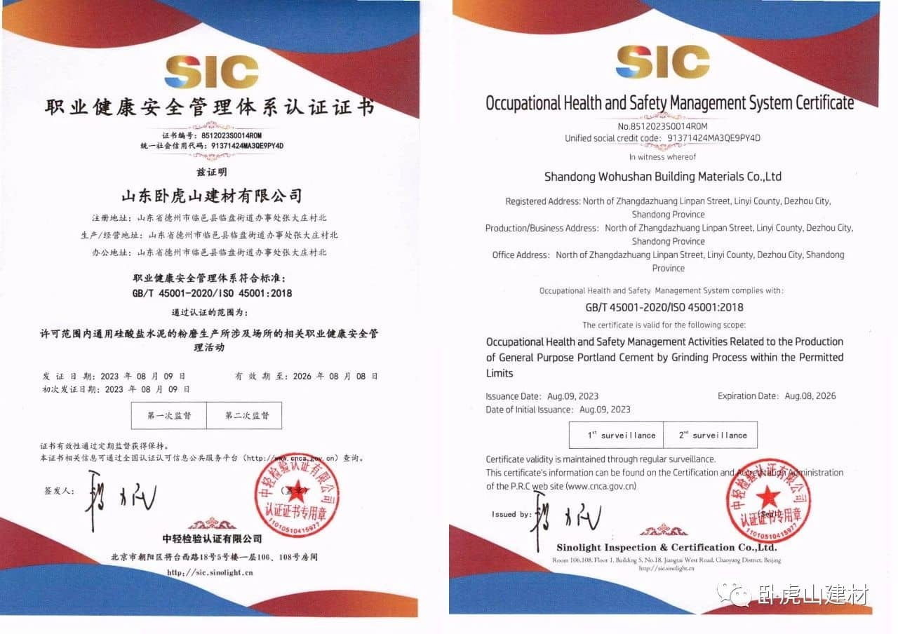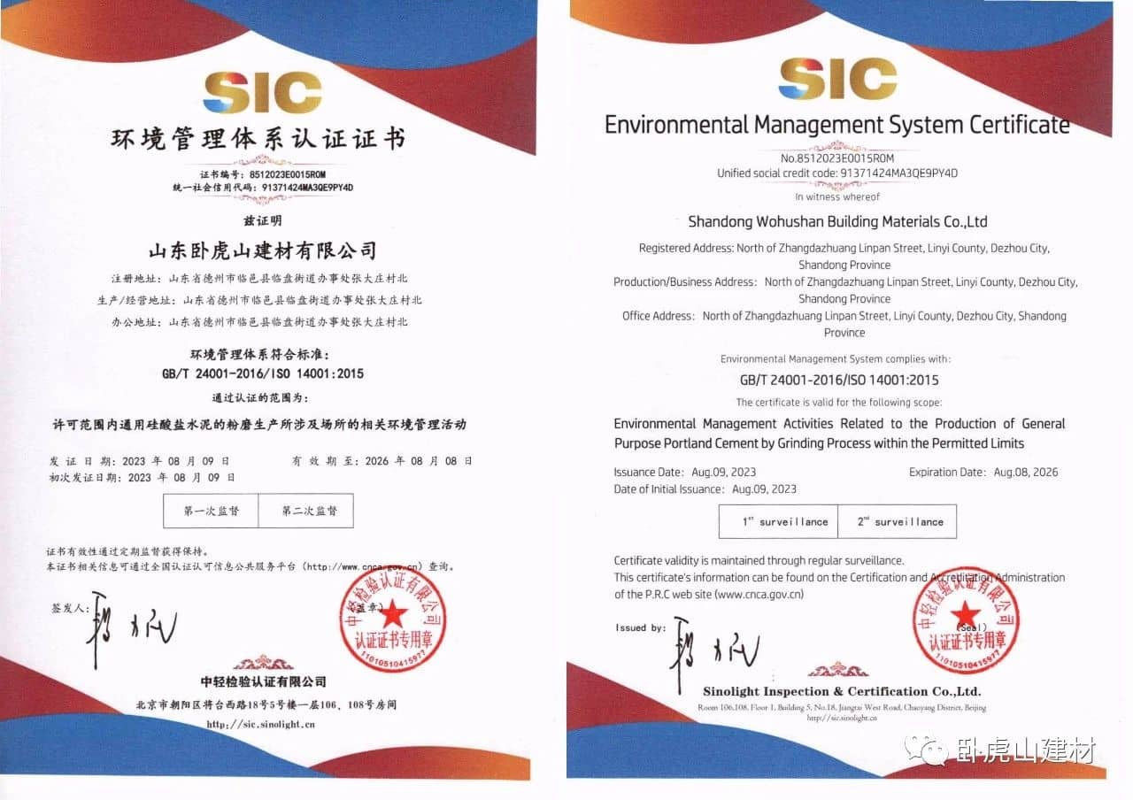 同时,专家组对我公司质量方面的严格管理和运行记录的细致提出表扬,对于山东卧虎山建材有限公司的能源、质量、环境和职业健康安全管理体系管理规范程度、运行有效程度给予高度认可,一致认为公司在质量、环境、职业健康安全和能源方面的管理符合体系运行的规定,同意推荐。同时,为保证公司体系更加有效运行,提出了宝贵建议。经过中轻检审核专家对公司上报材料和专家意见融合评审后,2023年8月9日正式发放证书。