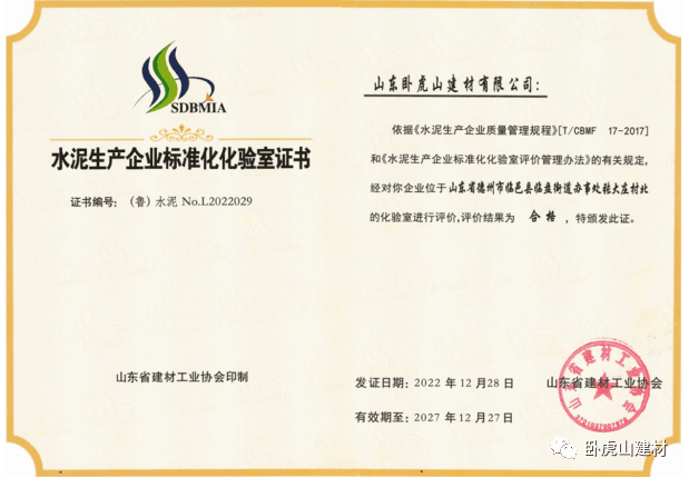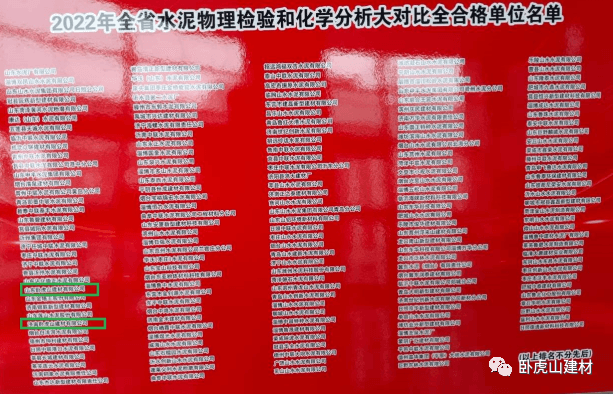 今年以来,公司凭借强大的技术力量、先进的生产设备、可靠的原料质量和过硬的产品质量,先后获得全省水泥生产企业标准化化验室证书、全省2022年水泥物理检验和化学分析大对比全合格单位、2023年度全国水泥质量万里行活动区域质量标杆企业等荣誉称号。