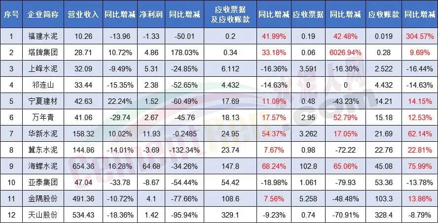 海螺水泥上半年应收票据及应收账款147.8亿,同比增长68.24%,其中应收票据102.8亿,同比增加65.06%,应收账款45.08亿,同比增加75.99%。