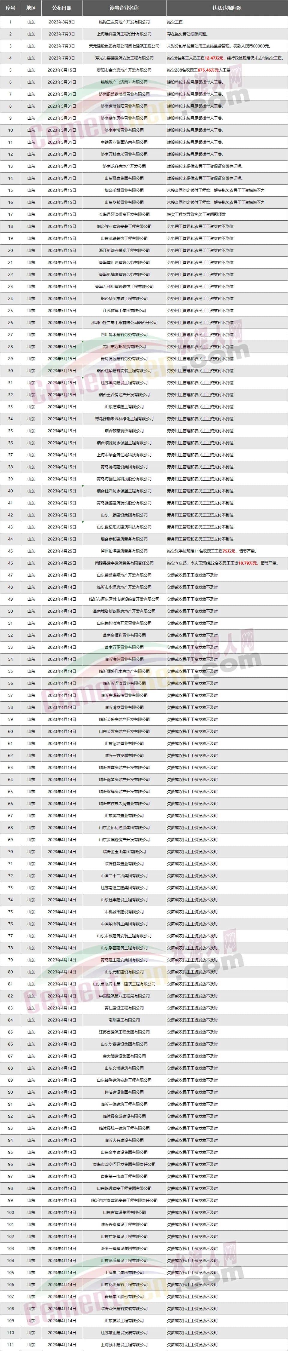 山东111家房企、建企欠薪被通报或处罚,涉及金额781.72万元